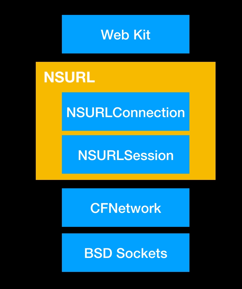 2.NSURL 层: NSURLSession 和 NSURLConnection 在这层,也就是我们平时常用的 API,它封装的 CFNetwork。