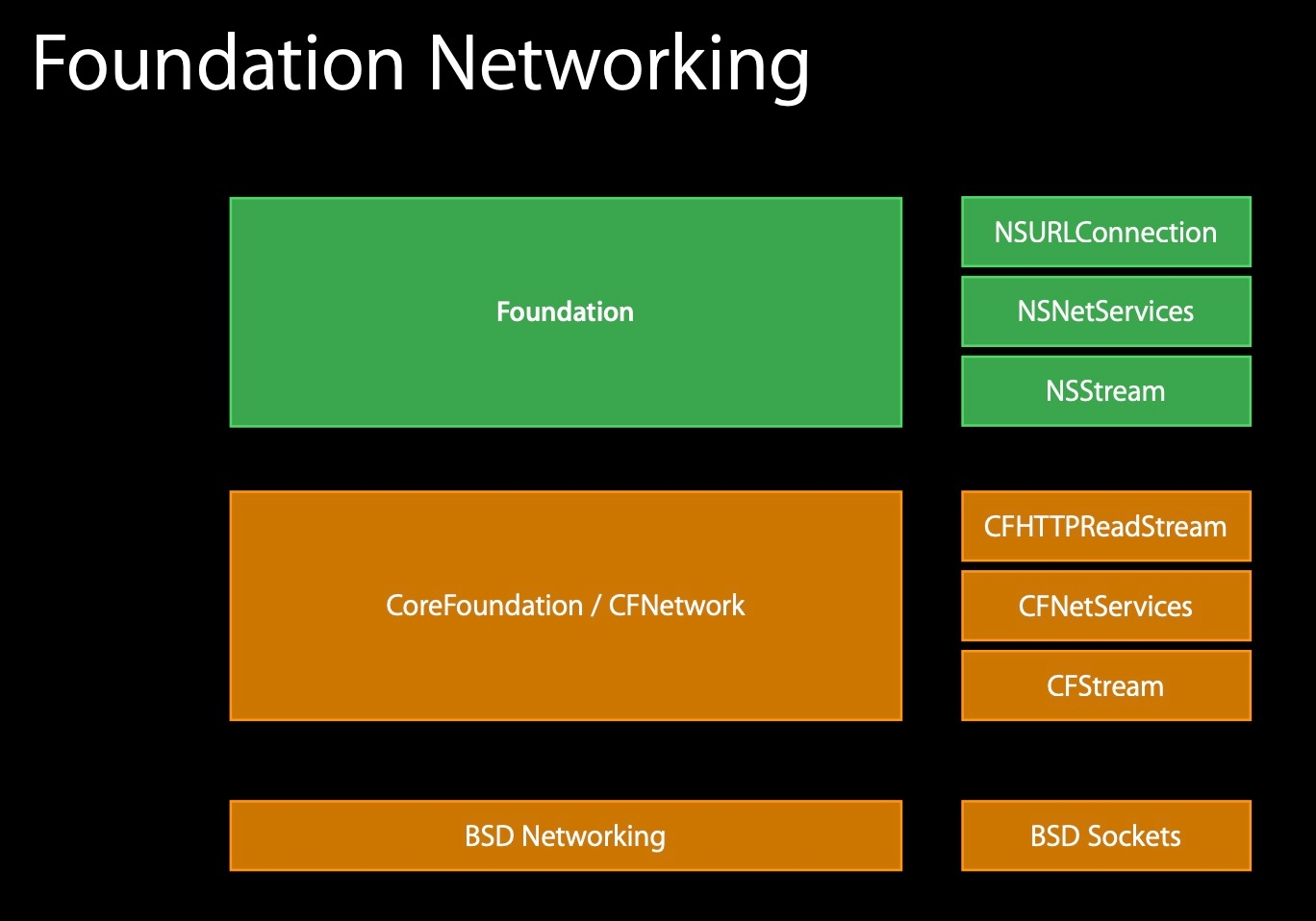 经过自己的例子,和官方文档的资料,我们认为 iOS 当中的网络框架结构是这样的。